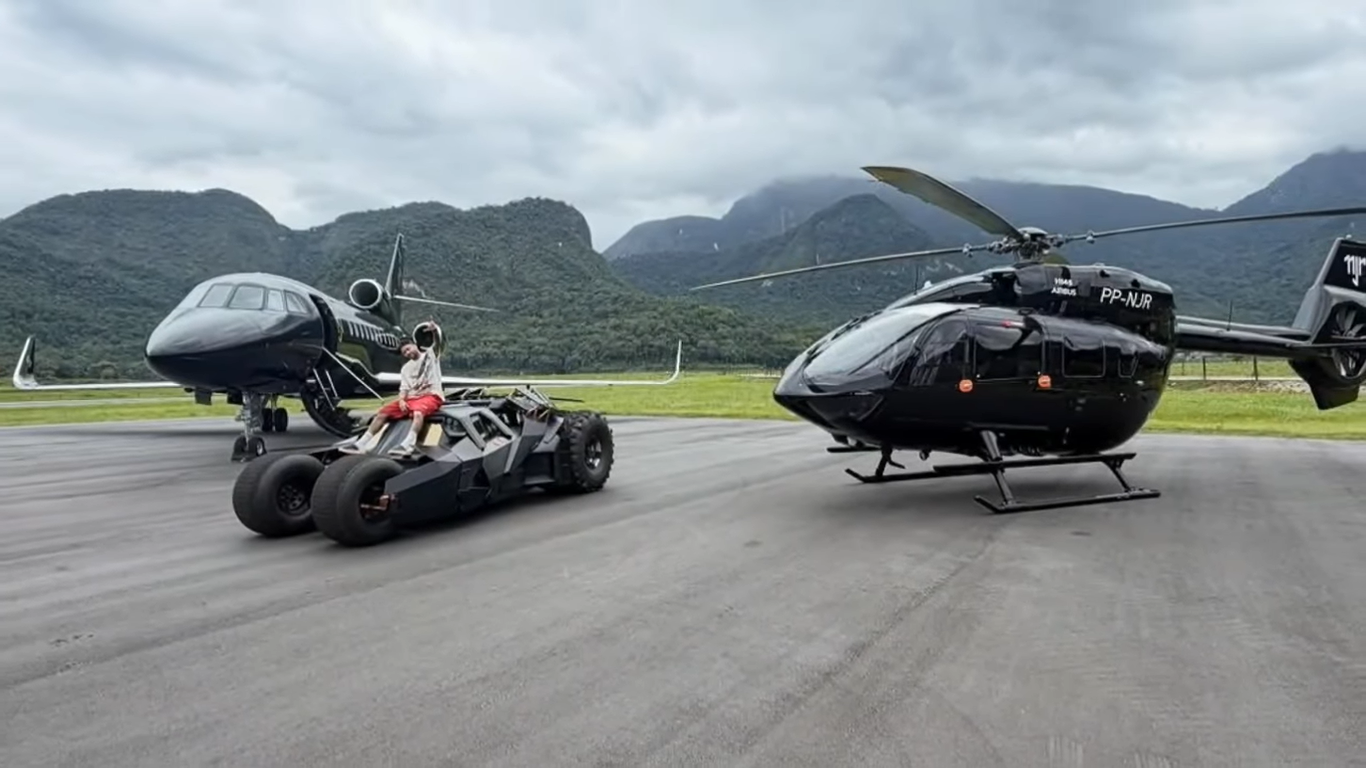В кадр также попали другие дорогостоящие активы футболиста: личный вертолет стоимостью около $14 млн и частный реактивный самолет Dassault Falcon 900LX, цена которого оценивается в $50 млн. Так, Бэтмобиль занял достойное место среди уже имеющихся у Неймара атрибутов роскошного образа жизни.